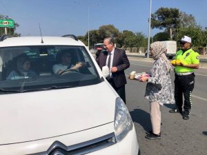 Hafta dolayısıyla gerçekleştirilen trafik uygulamasına Erdemli İlçe Kaymakamı Aydın Tetikoğlu, İlçe Emniyet Müdürü Ömer Engin Genç, İlçe Jandarma Komutanı Binbaşı Esat Can Öztürk, Ticaret ve Sanayi Odası Başkanı Mustafa Karagöz, Şoförler Odası Başkanı Orhan Güler katıldı. Trafik uygulamasında araç sürücülerine ve yolculara, Erdemli’nin simgesi olan limon, limonata ve çeşitli hediyeler takdim edildi. Ayrıca Karayolu Güvenliği ve Trafik Haftası konularında bilgilendirme yapıldı, broşürler dağıtıldı.